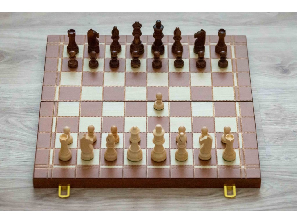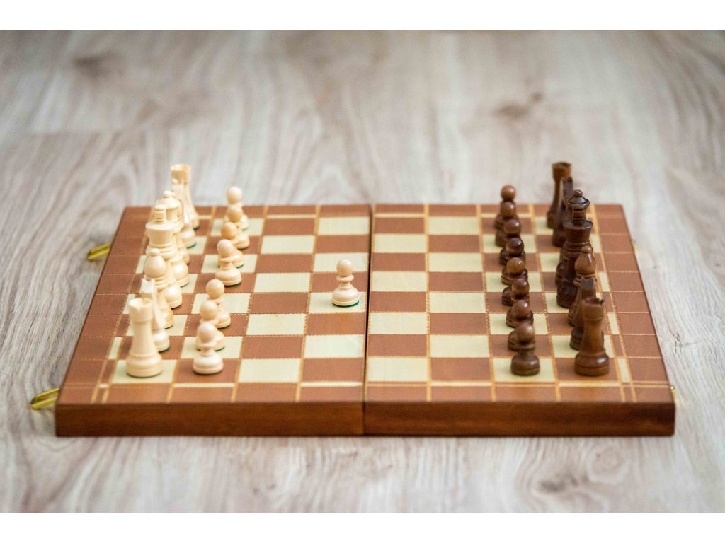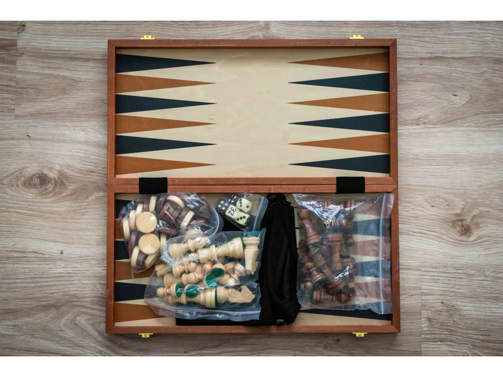 Ein schönes Schachspiel aus Holz zusammen mit dem beliebten Backgammonspiel in einer praktischen Verpackung