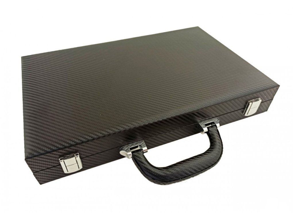 Eine luxuriöse Version des beliebten Backgammon-Spiels in einer Transporttasche aus Kunstleder.