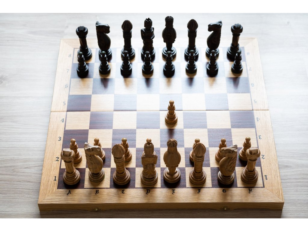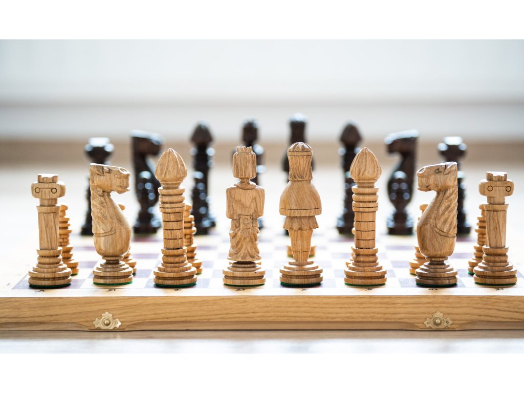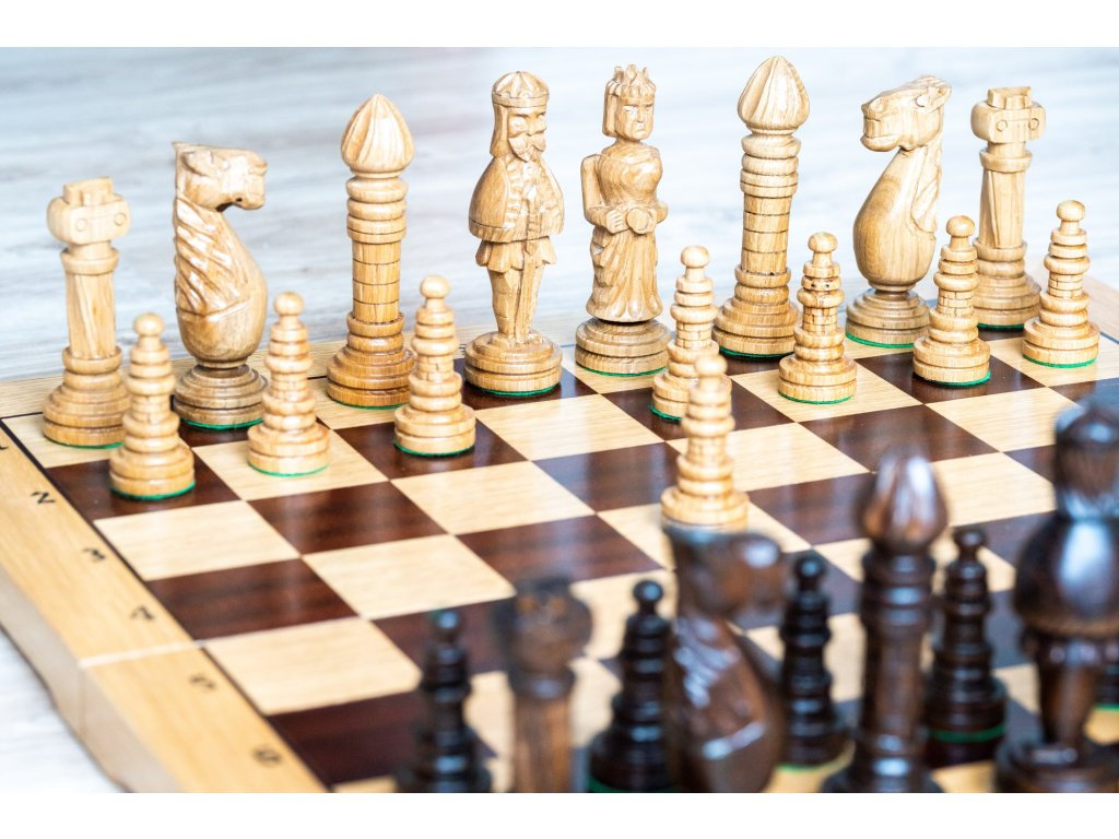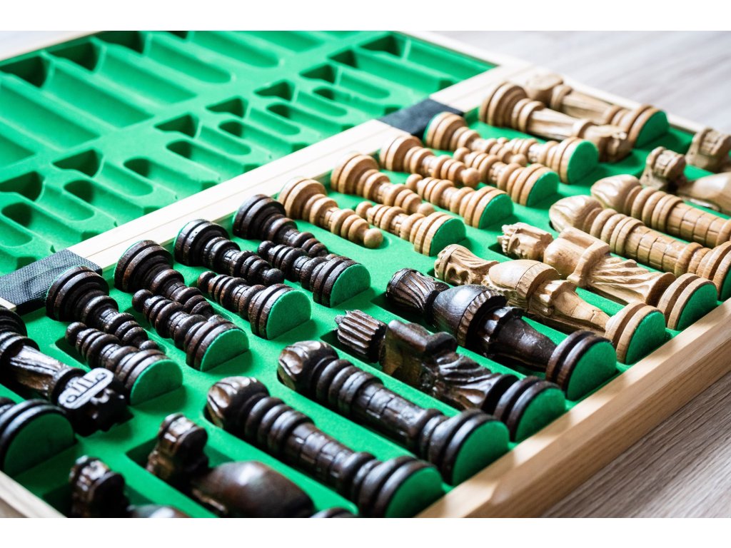 Schachspiel geeignet als Geschenk oder für zu Hause. Die Größe der Figuren sowie des Schachbretts ist beeindruckend und unübersehbar.
