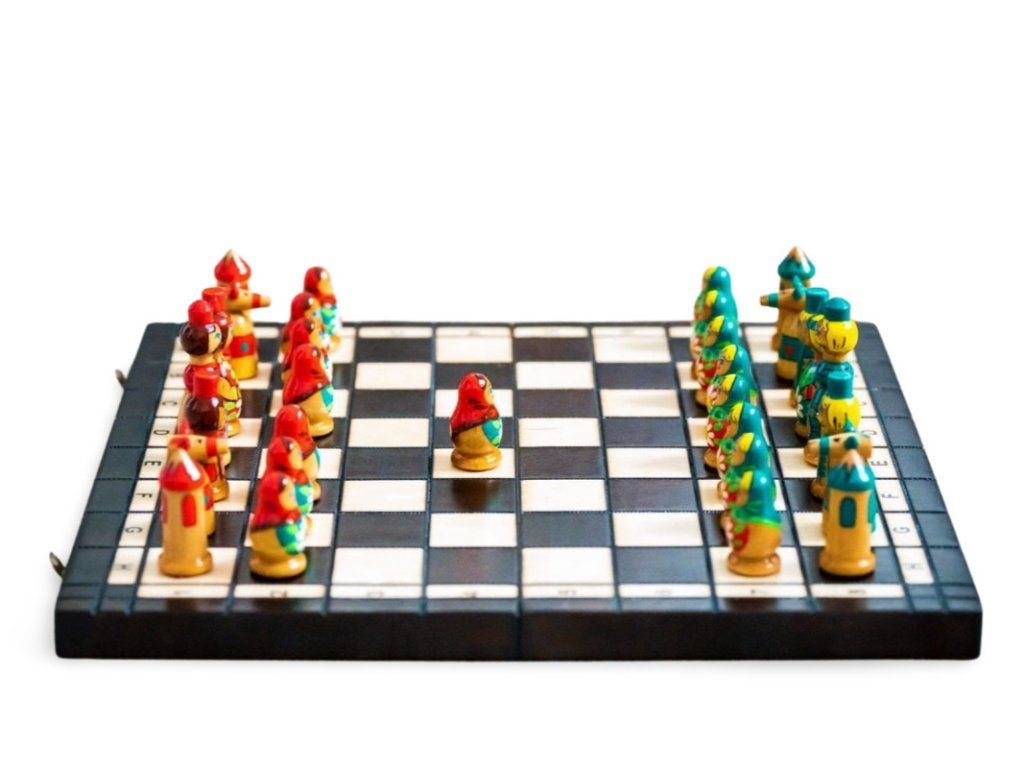 Einzigartiges Design des Schachspiels, handgefertigt.