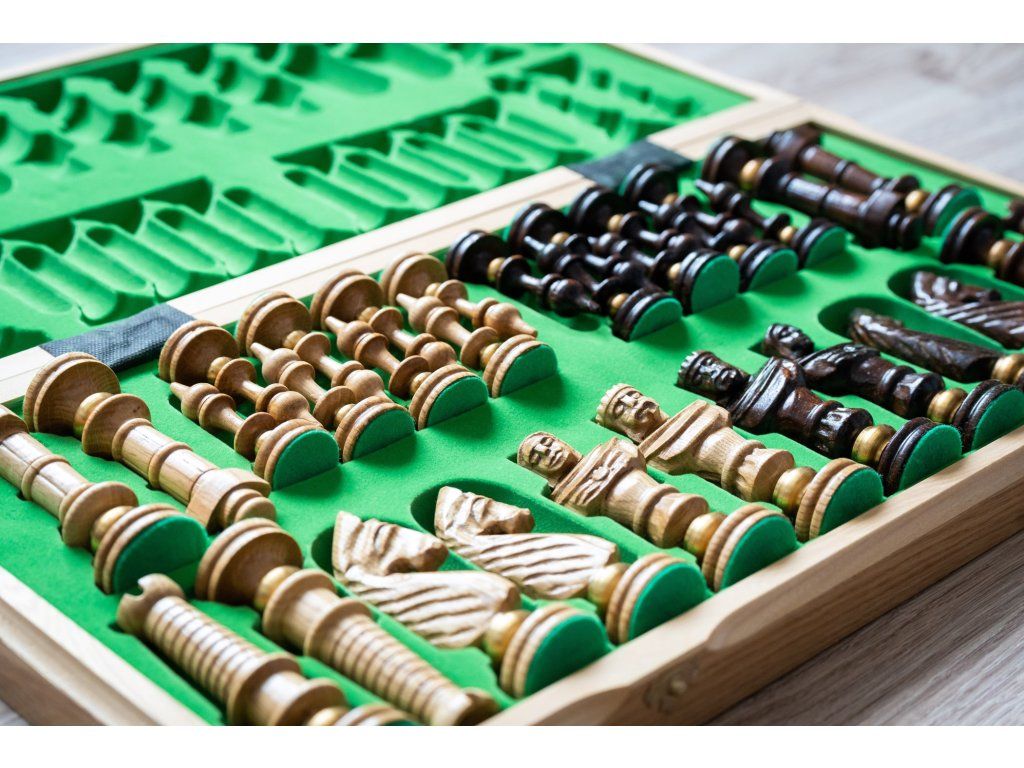 | Typ des Schachbretts: | klappbares, mit dem Speicherplatz für Figuren |