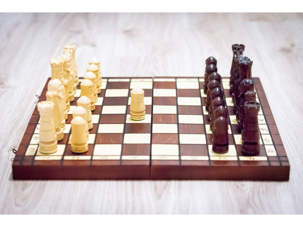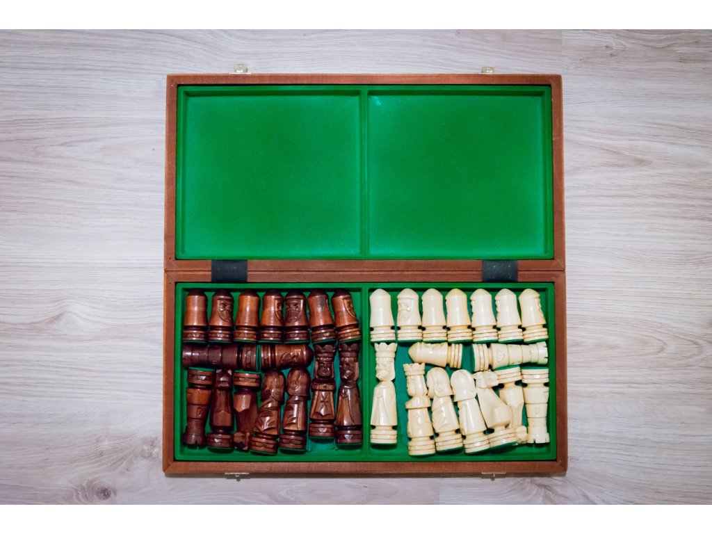 Die Figuren sind handgefertigt aus Lindenholz. Alle passen in das klappbare Schachbrett.