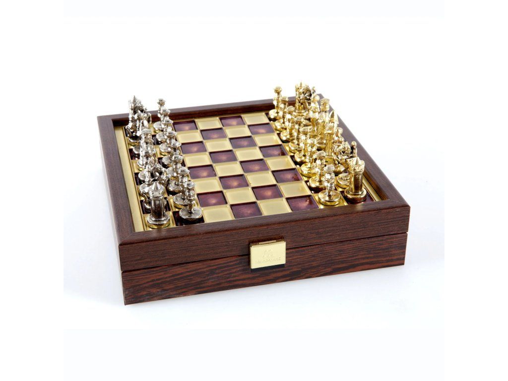 Erleben Sie die Pracht des Byzantinischen Reiches mit diesem wunderschön handgefertigten Schachset. Jede Figur, prächtig mit Gold und Silber verziert, spiegelt das reiche kulturelle Erbe der byzantinischen Epoche wider. Dieses extra kleine Set ist ein Beweis für feine Handwerkskunst und Liebe zum Detail.