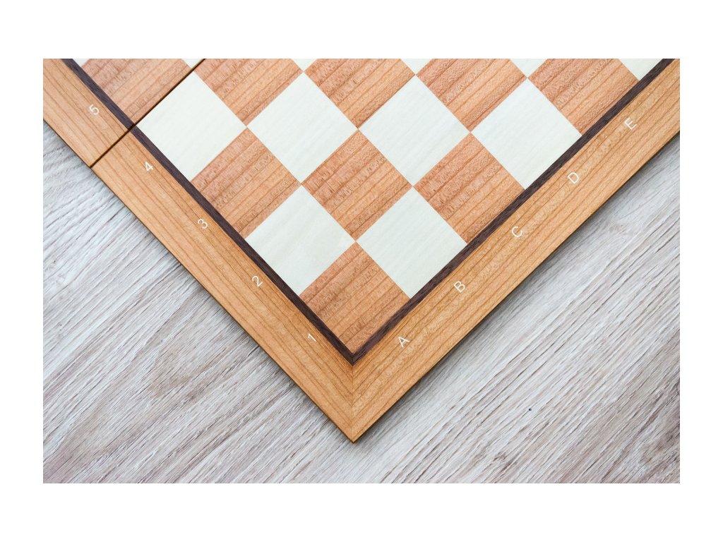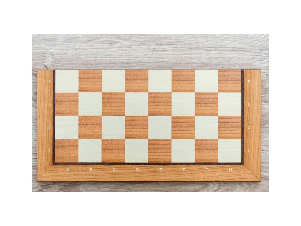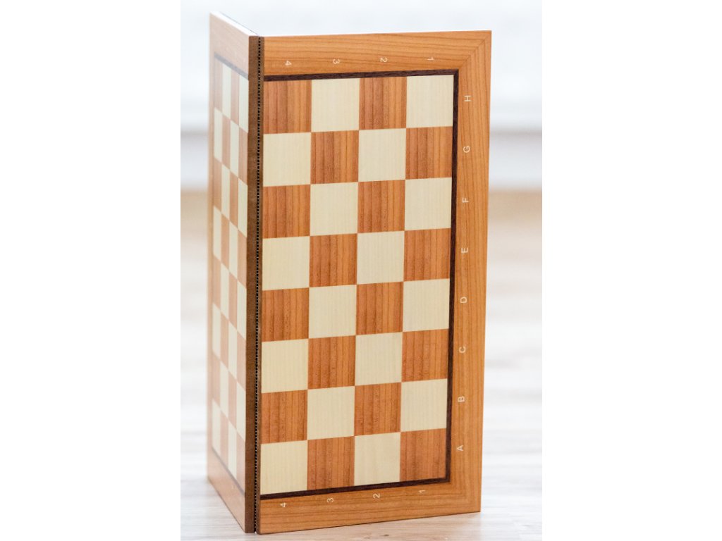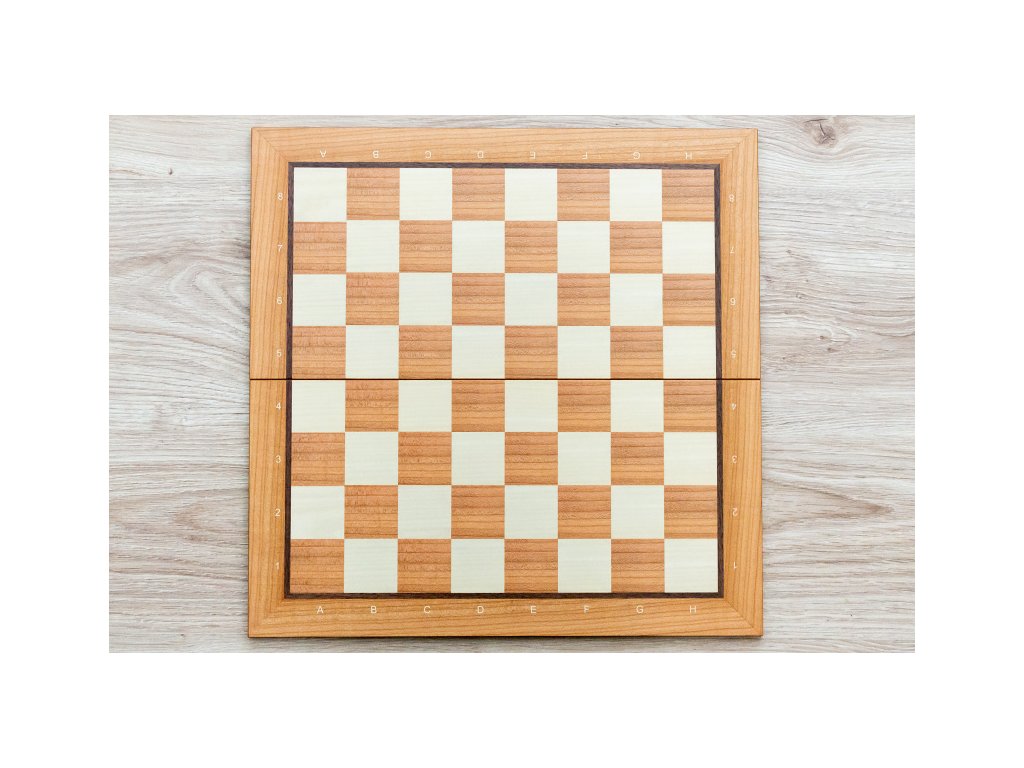 Klappbares Holzschachbrett aus Ahornholz. Das Schachbrett ist mit Notation (Zahlen und Buchstaben) am Rande.