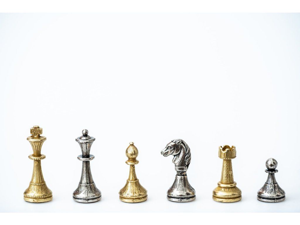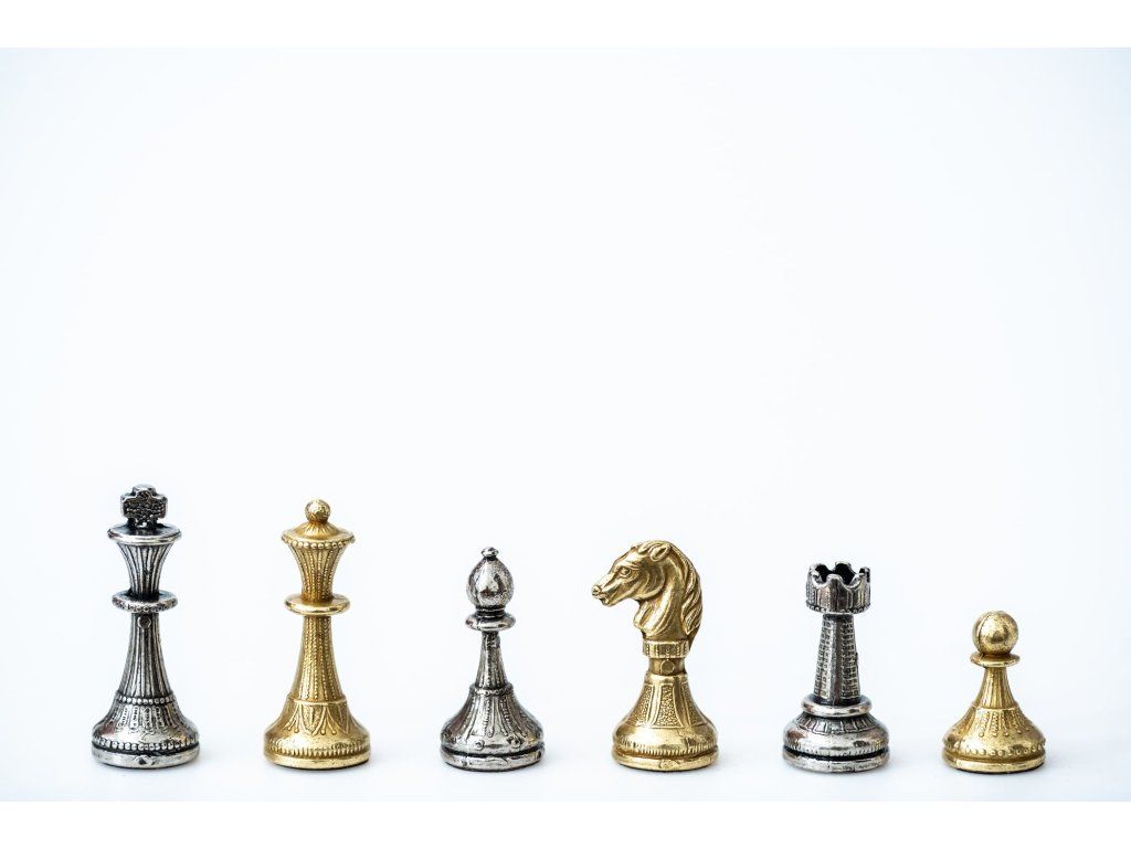 Handgefertigte Metallschachfiguren mit dem Zertifikat.