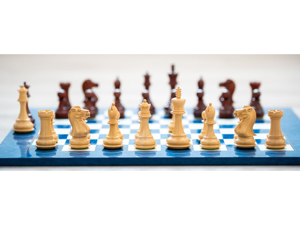 Erleben Sie Schach von seiner luxuriösesten Seite mit dem exklusiven Imperial Blau & Rot Set. Die Kombination des königsblauen Azure Royale Schachbretts und der majestätischen roten Champion Red Figuren schafft den perfekten Kontrast, der Raffinesse und Prestige ausstrahlt. Sorgfältig verarbeitete Materialien, elegante Details und perfekte Proportionen machen dieses Set zum idealen Accessoire für jeden anspruchsvollen Schachspieler.