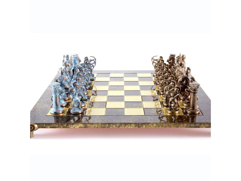 Wir präsentieren das elegante handgefertigte Schachset Archers, ein Meisterwerk, das die Kunst des Bogenschießens und historischer Schlachten verkörpert. Dieses große Set enthält sorgfältig gefertigte blaue und bronzene Schachfiguren, ergänzt durch ein beeindruckendes bronzenes Metallschachbrett.