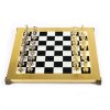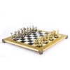 Handgefertigte Schachfiguren in Gold und Silber.Schachbrett aus Messing mit den Maßen 36 x 36 cm, ideal für mittelgroße Räume.