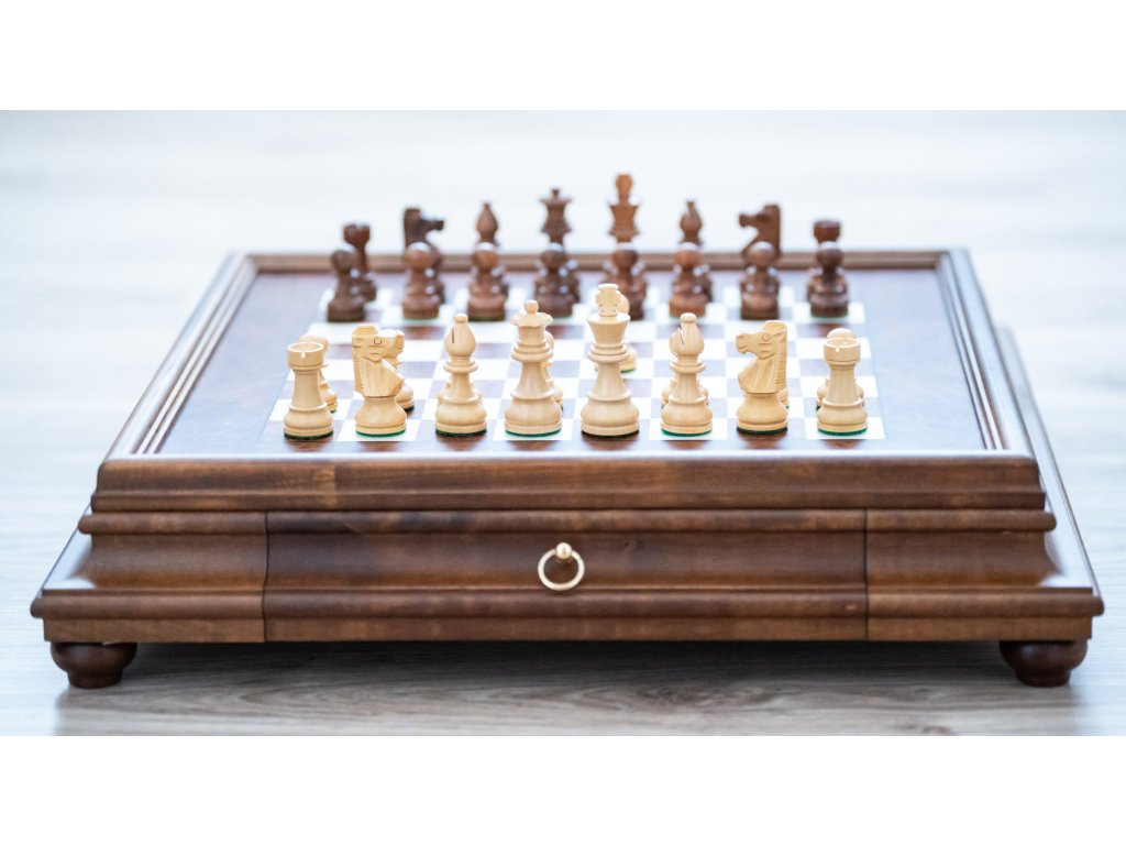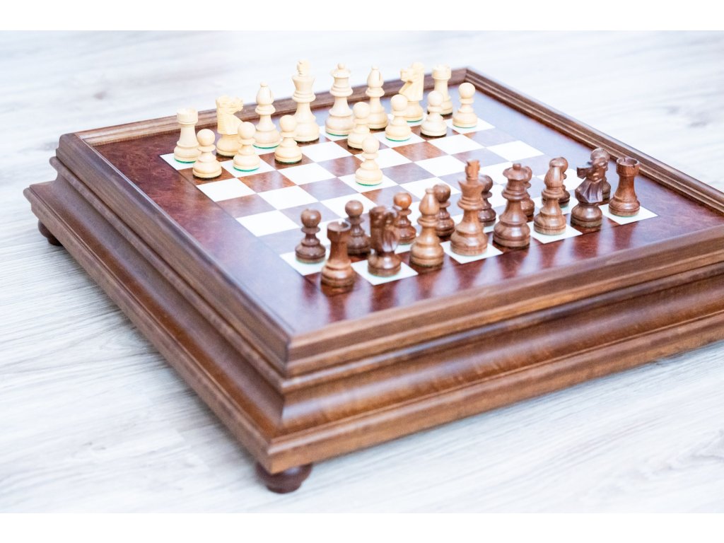 | Material des Schachbretts: | Bruyèreholz und Eschenholz |