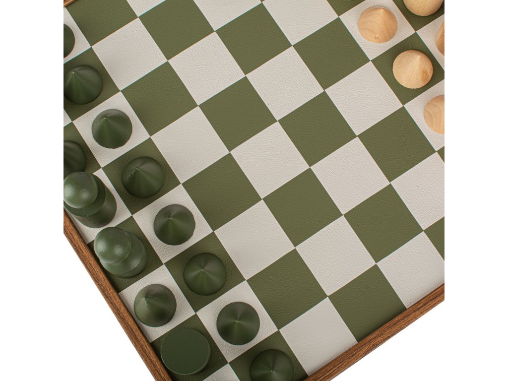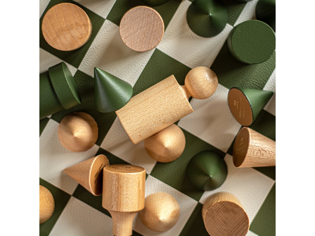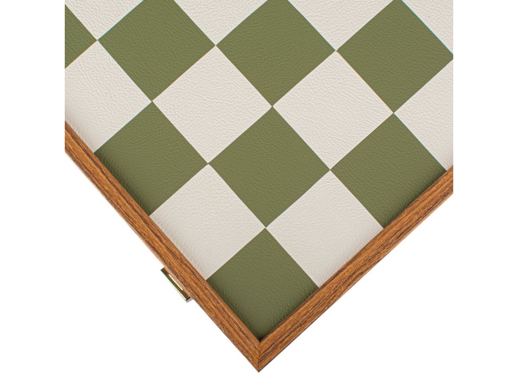 Die polierte Oberfläche unterstreicht die leuchtend grüne Farbe und das elegante Design des Brettes und der Figuren und verleiht Ihrer Spielesammlung einen raffinierten Touch.