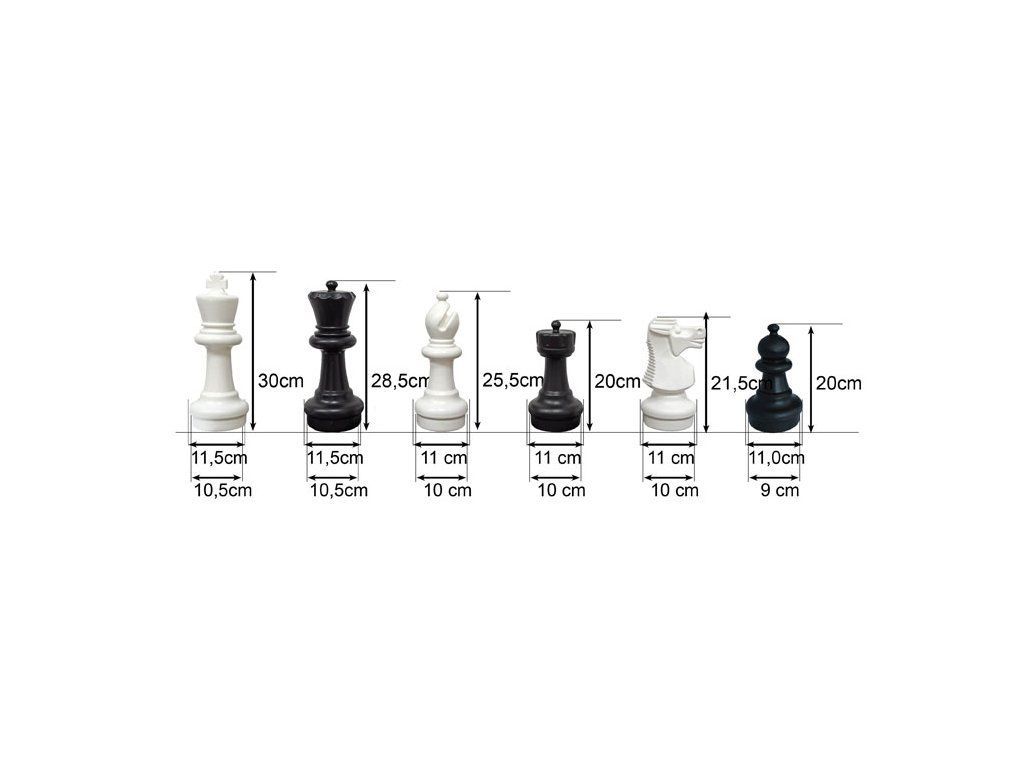 Schachfiguren ideal für den Einsatz im Freien. Das Set enthält 16 weiße und 16 schwarze Schachfiguren.