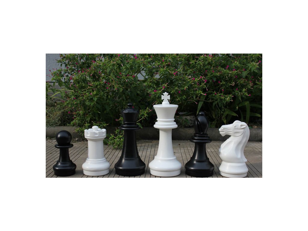 Schachfiguren ideal für das Schachspiel draußen. Das Set enthält 16 weiße und 16 schwarze Figuren.