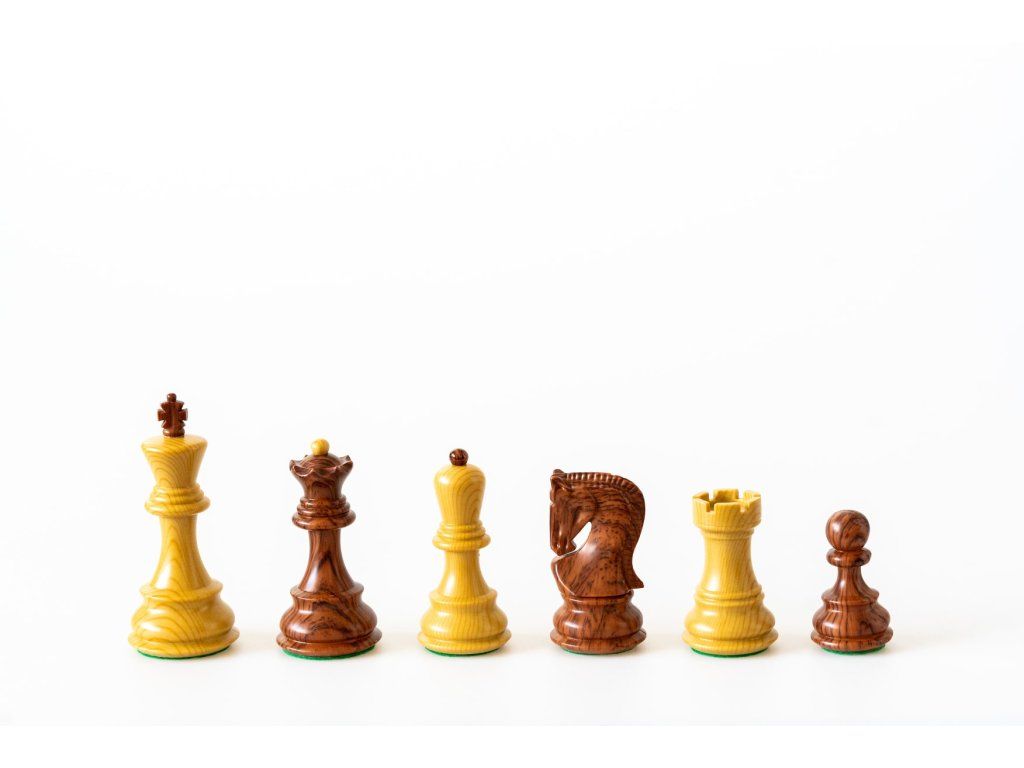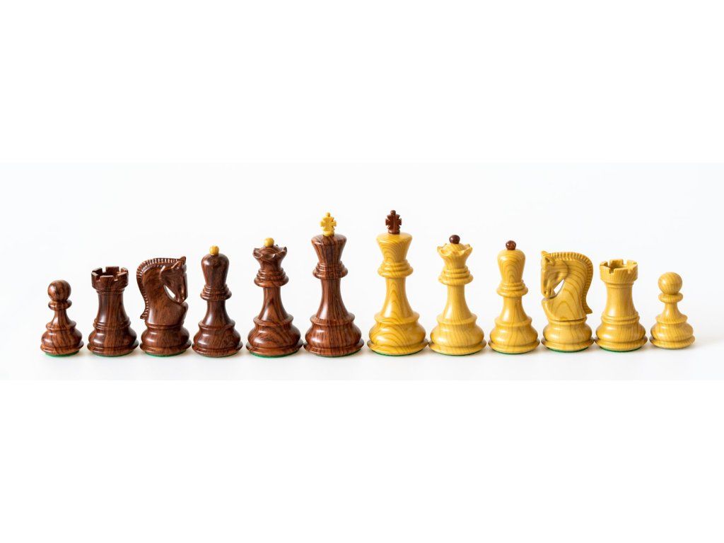 Die Figuren sind schön profiliert, wobei der Springer ein unverwechselbares Aussehen hat .Alle Figuren haben eine einfache Kurve ohne scharfe Spitzen, was sie zu einer ausgezeichneten Wahl für Schachspieler macht.