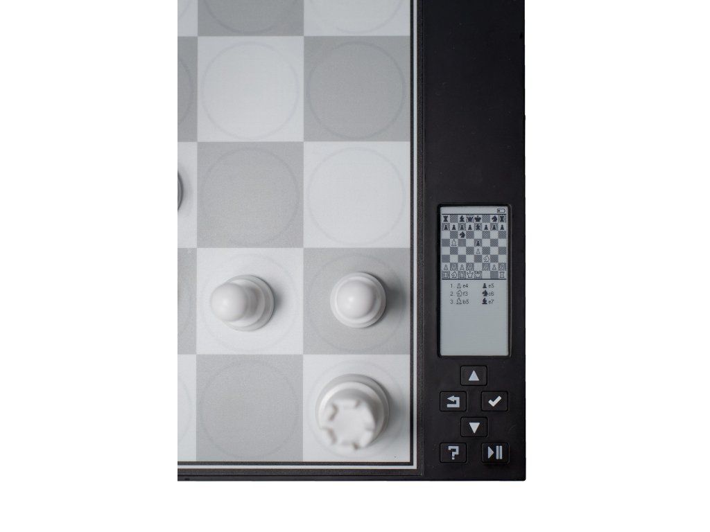 Es verfügt über eine aufladbare Batterie, ein E-Paper-Display, intuitive Einstellmöglichkeiten in vielen Sprachen und gewichtete Schachfiguren aus Kunststoff. Die Bewegungen des Computers werden durch einzigartige kreisförmige LED-Lichter angezeigt.