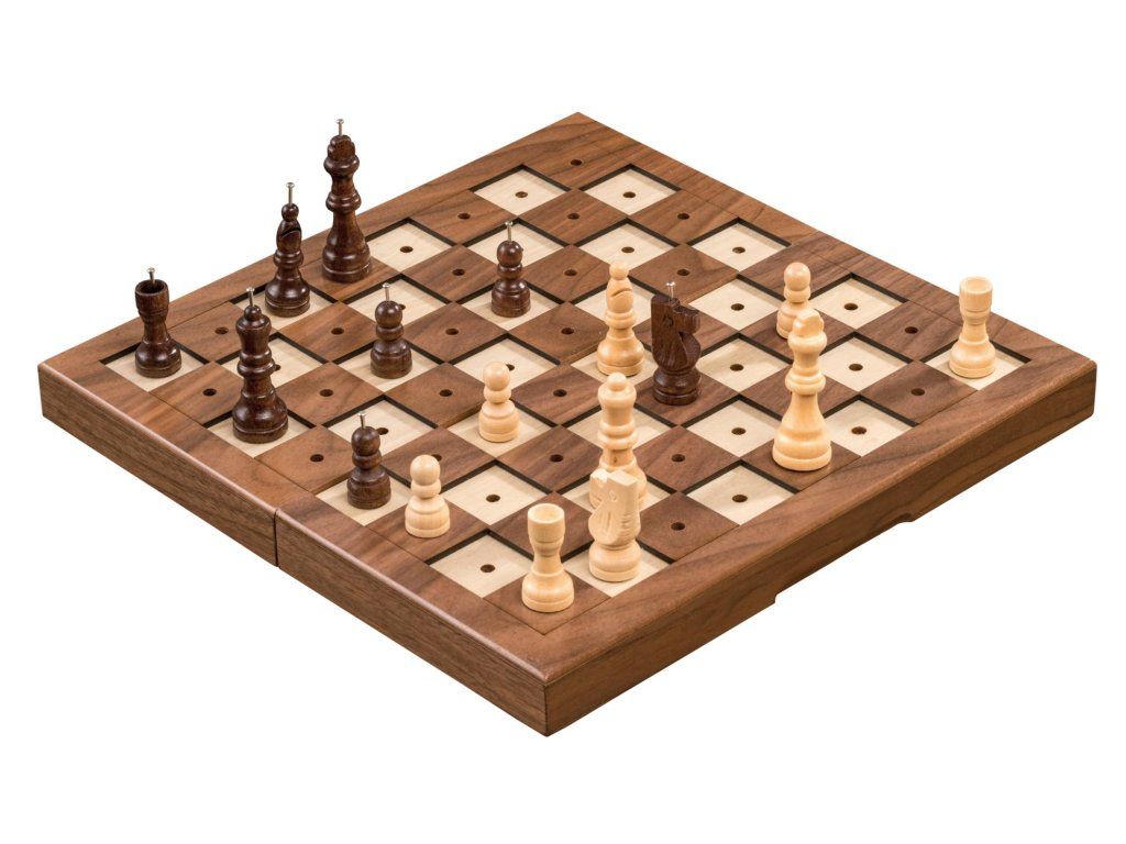Das Blindenschachspiel zeichnet sich durch eine besondere Behandlung des Schachbretts und der Figuren aus.