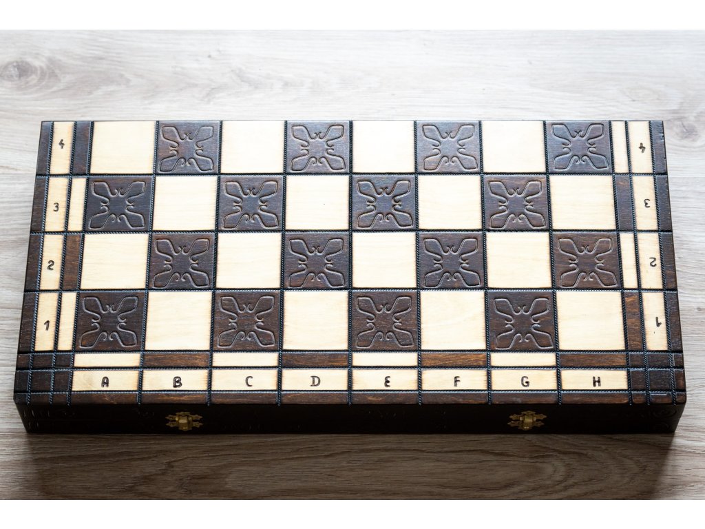| Typ des Schachbretts: | klappbares, mit dem Speicherplatz für Figuren |