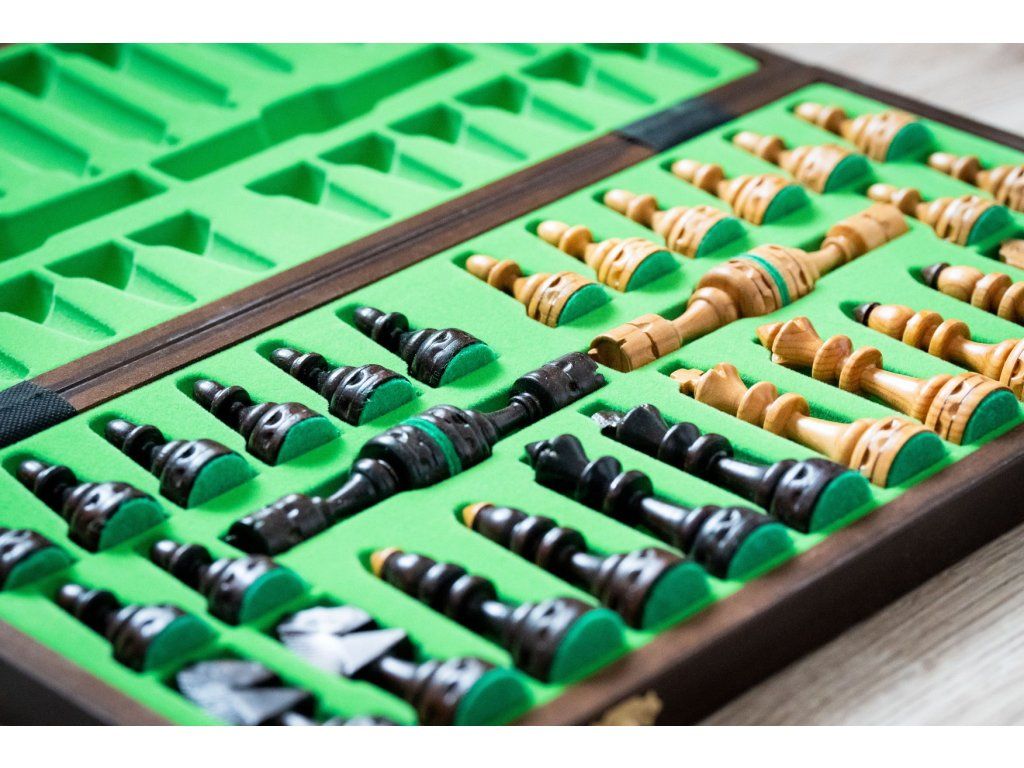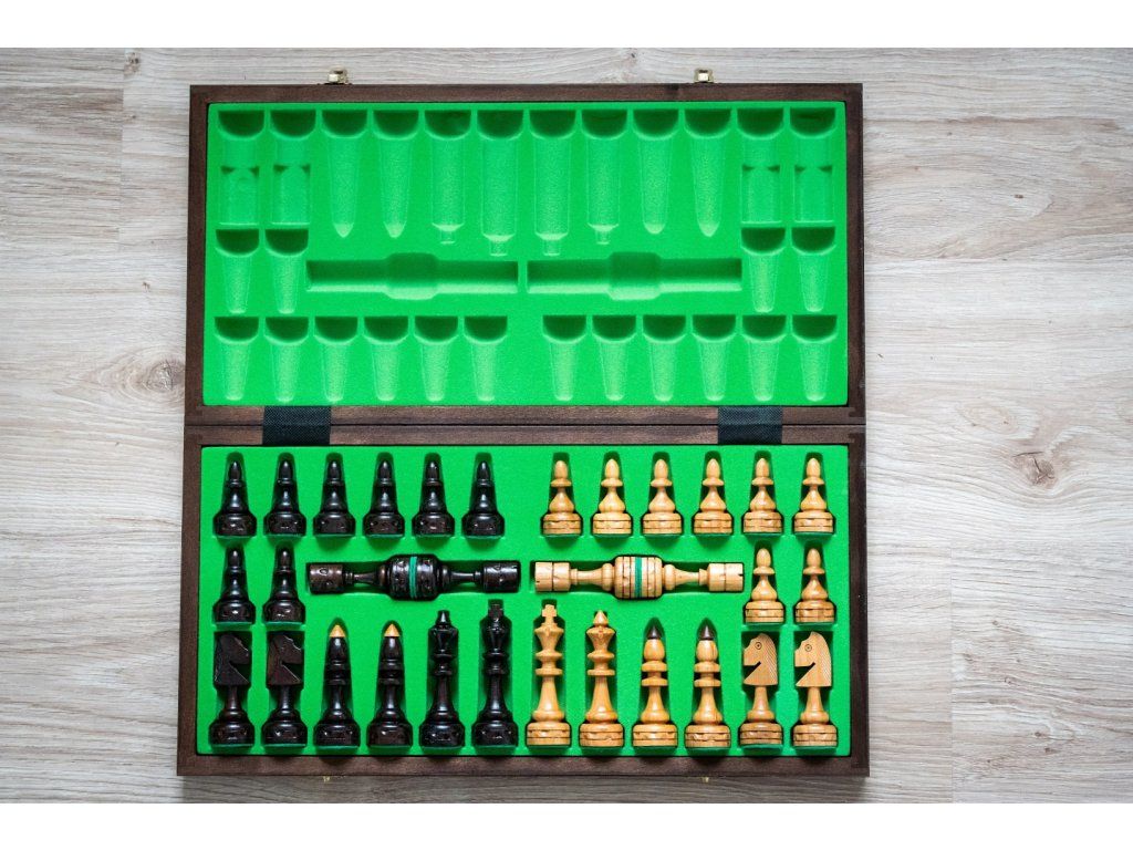 | Typ des Schachbretts: | klappbares, mit dem Speicherplatz für Figuren |