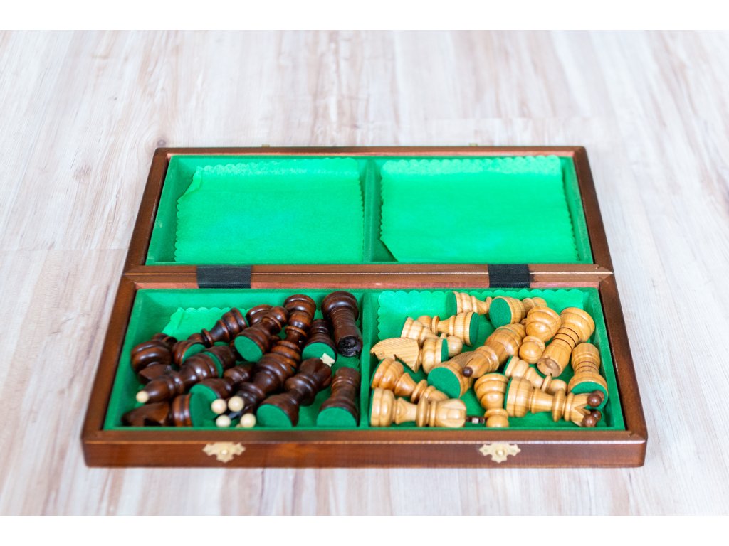 | Typ des Schachbretts: | klappbares, mit dem Speicherplatz für Figuren |