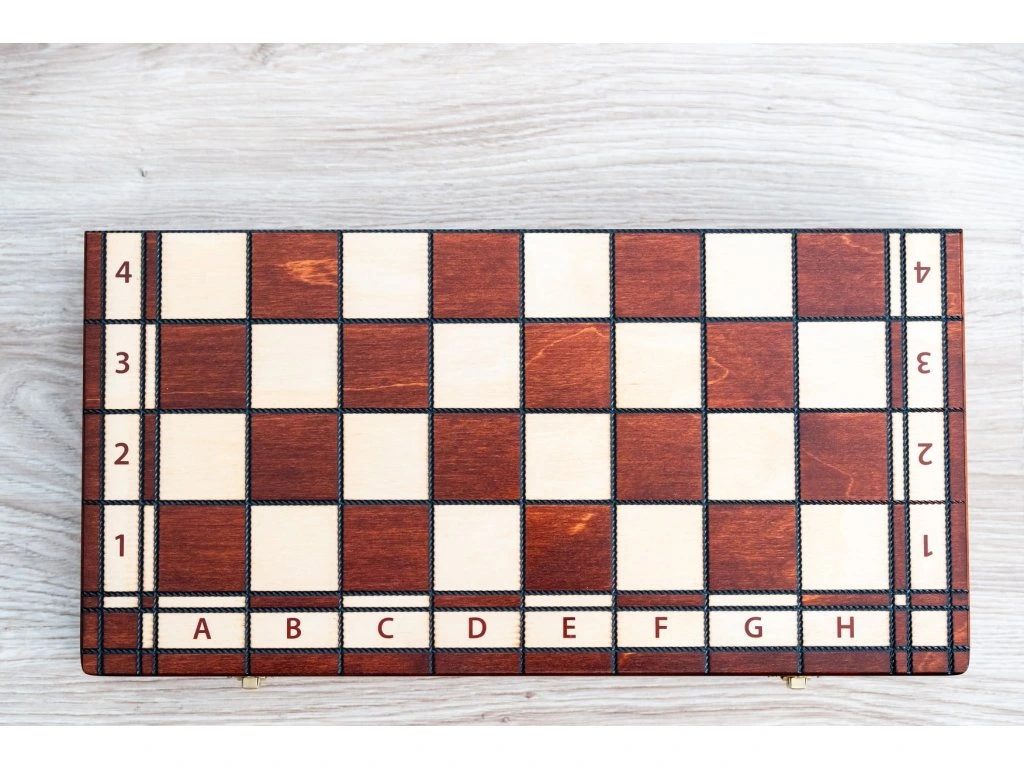 | Typ des Schachbretts: | klappbares, mit dem Speicherplatz für Figuren |