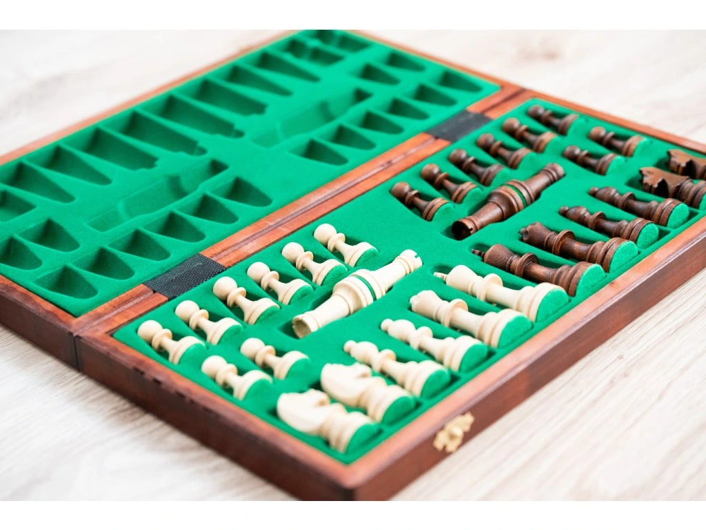 Schachspiel aus Holz, das der perfekte Begleiter für das Spiel zu Hause oder als Geschenk ist. Der Vorteil ist die einfache Lagerung und die Aufbewahrung von Figuren direkt im Schachbrett.