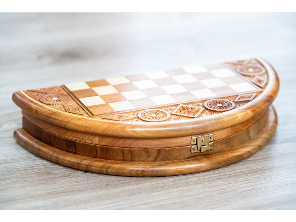 | Typ des Schachbretts: | klappbares, mit dem Speicherplatz für Figuren |