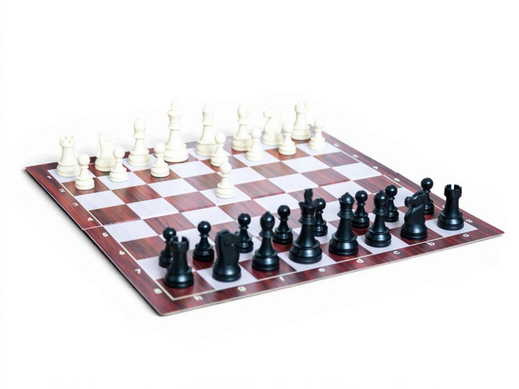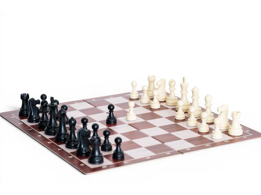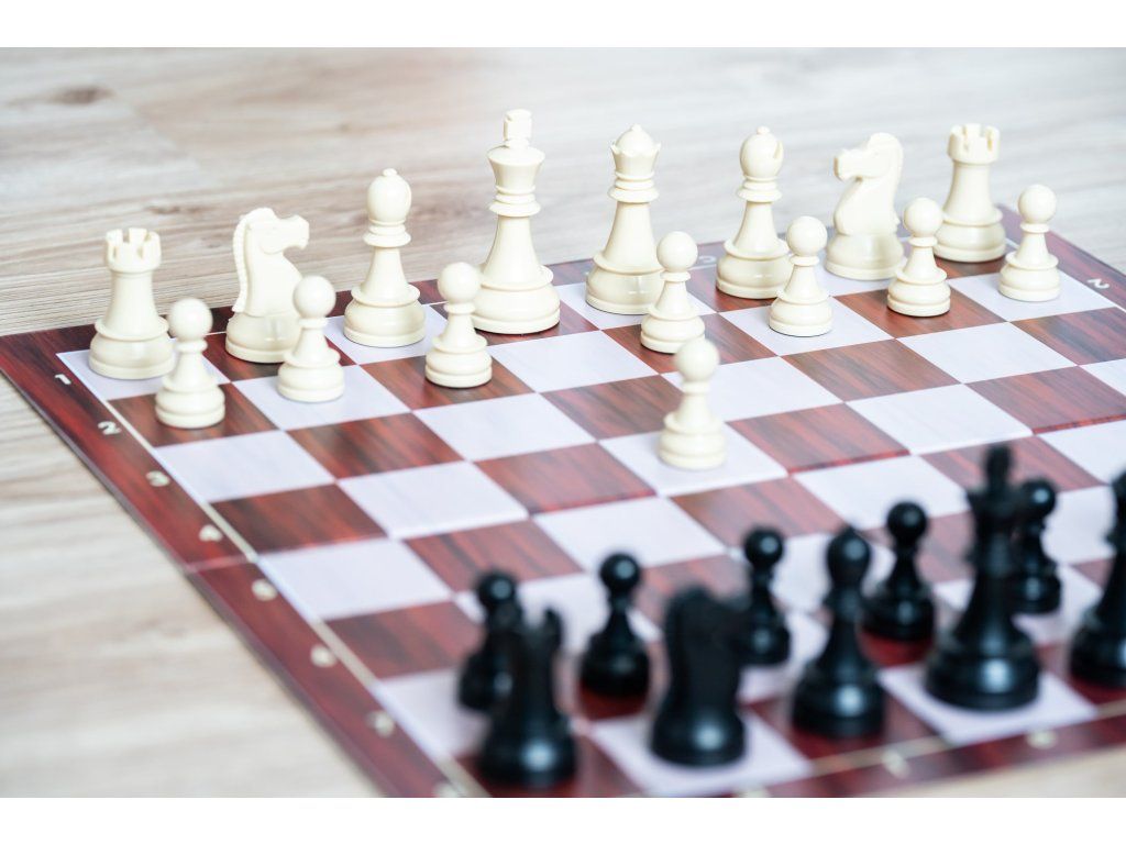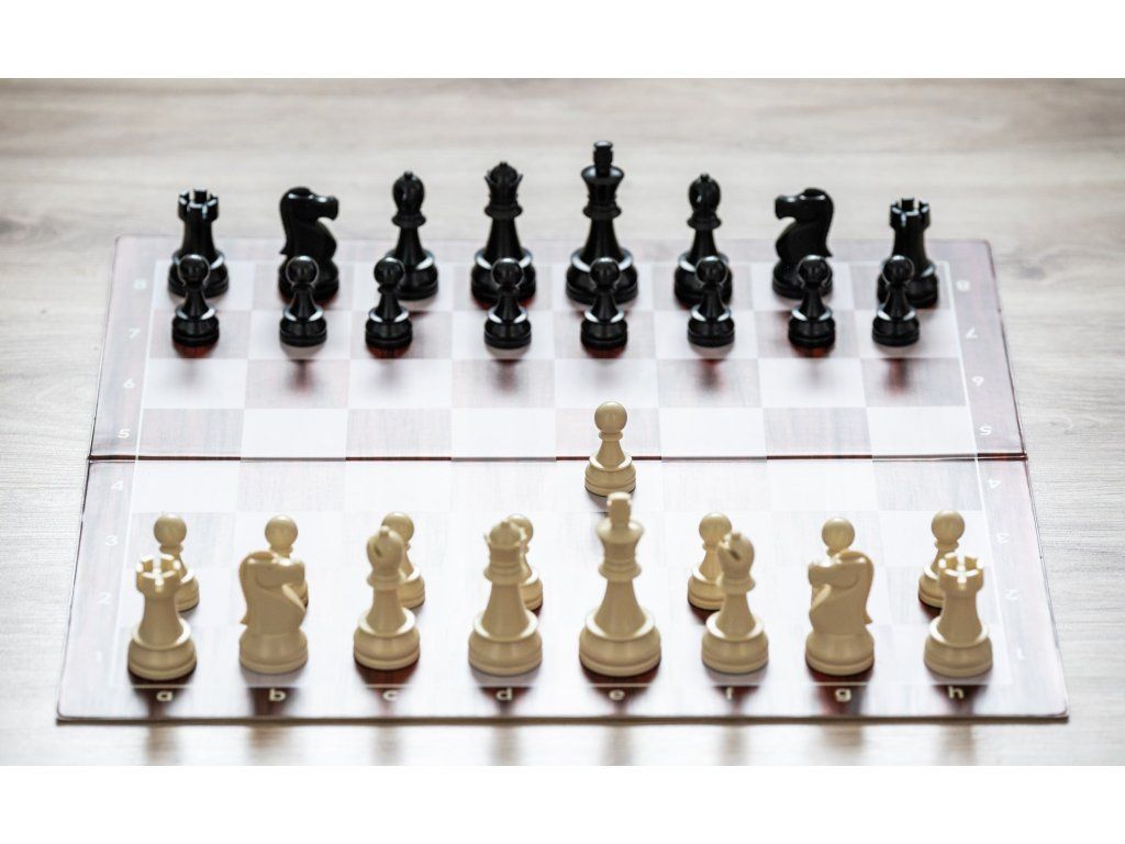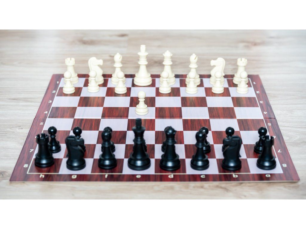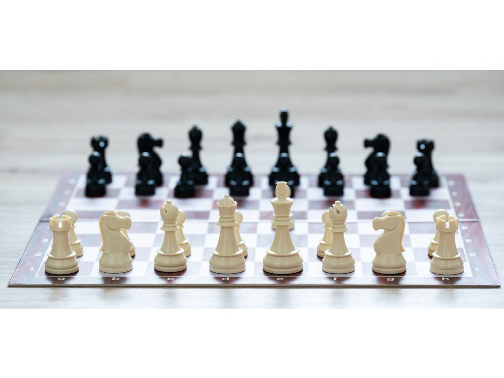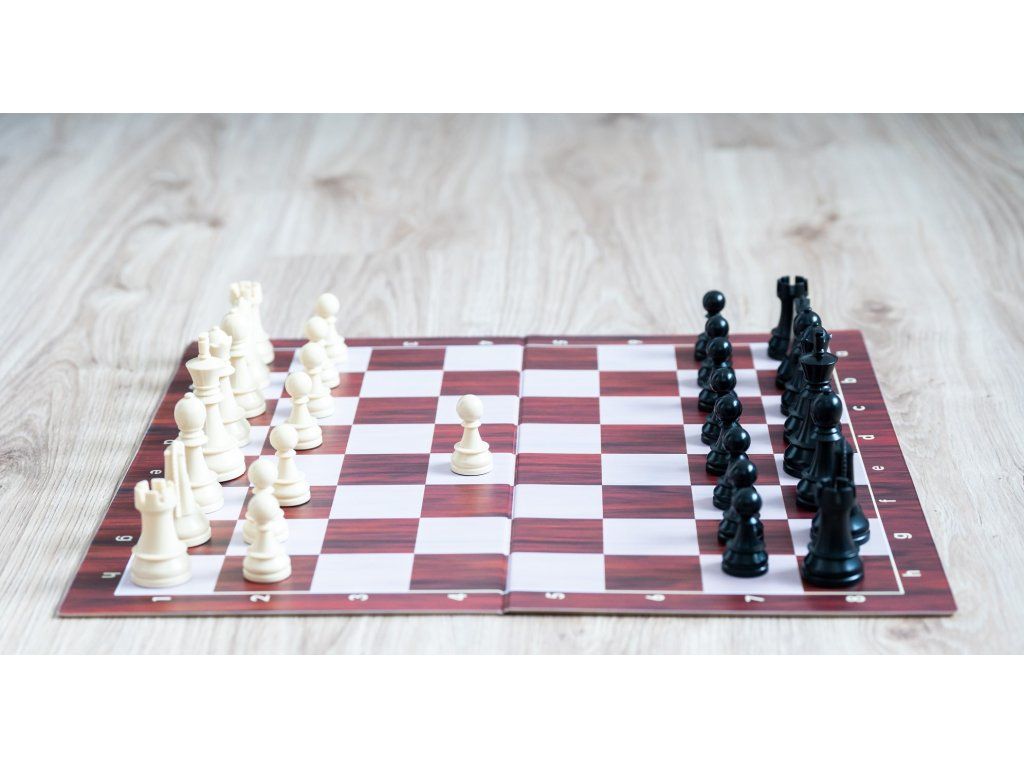 Zusammenklappbares Schachspiel mit ausbalancierten Figuren aus hochwertigem Kunststoff, ideal zum Spielen in einem Schachklub, in der Schule oder zu Hause.