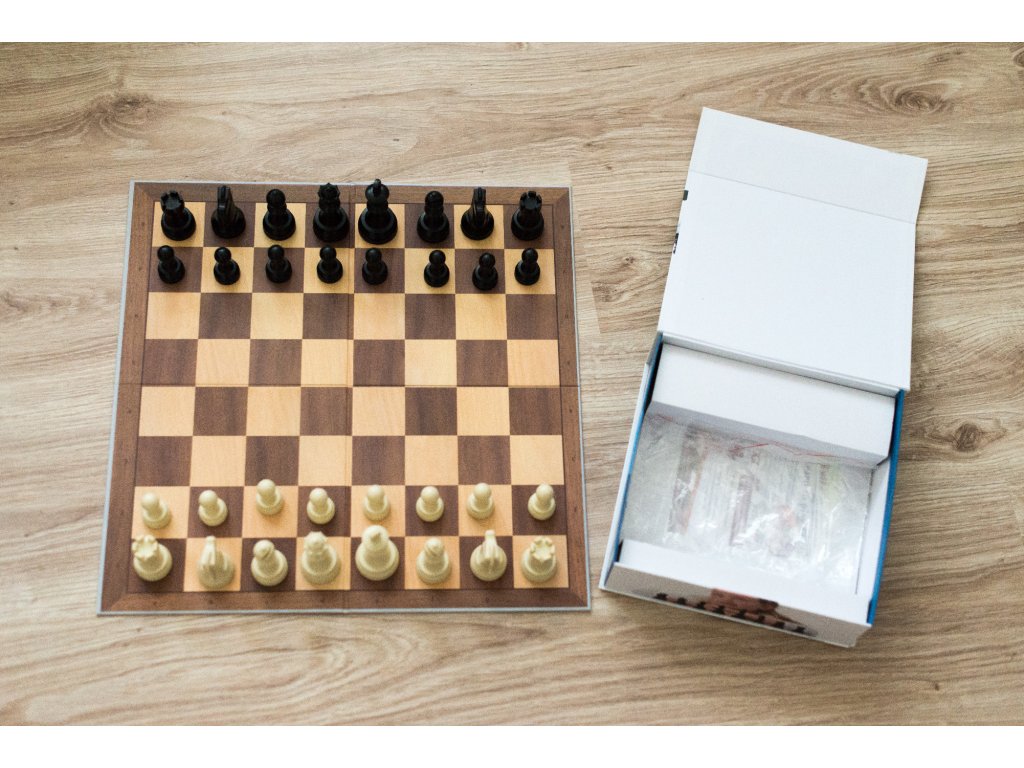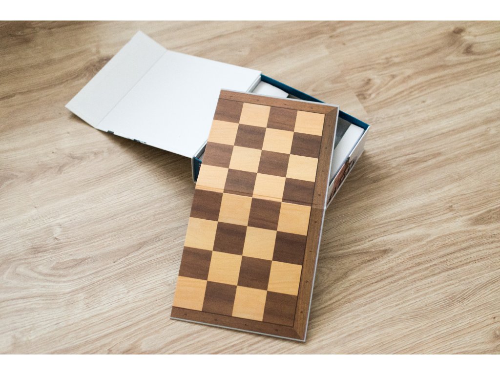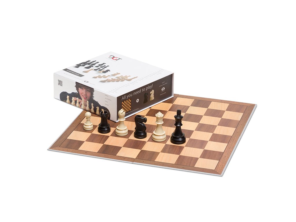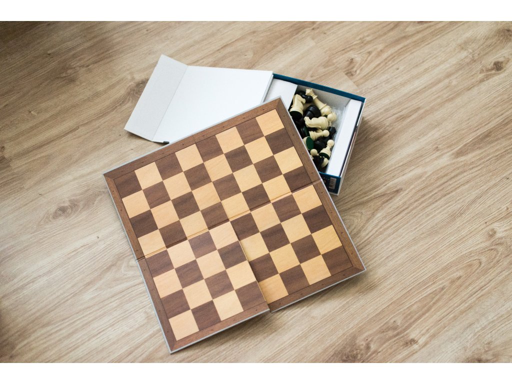 Das Set enthält (Teil des Pakets) ein faltbares Schachbrett und hochwertige Plastikfiguren.