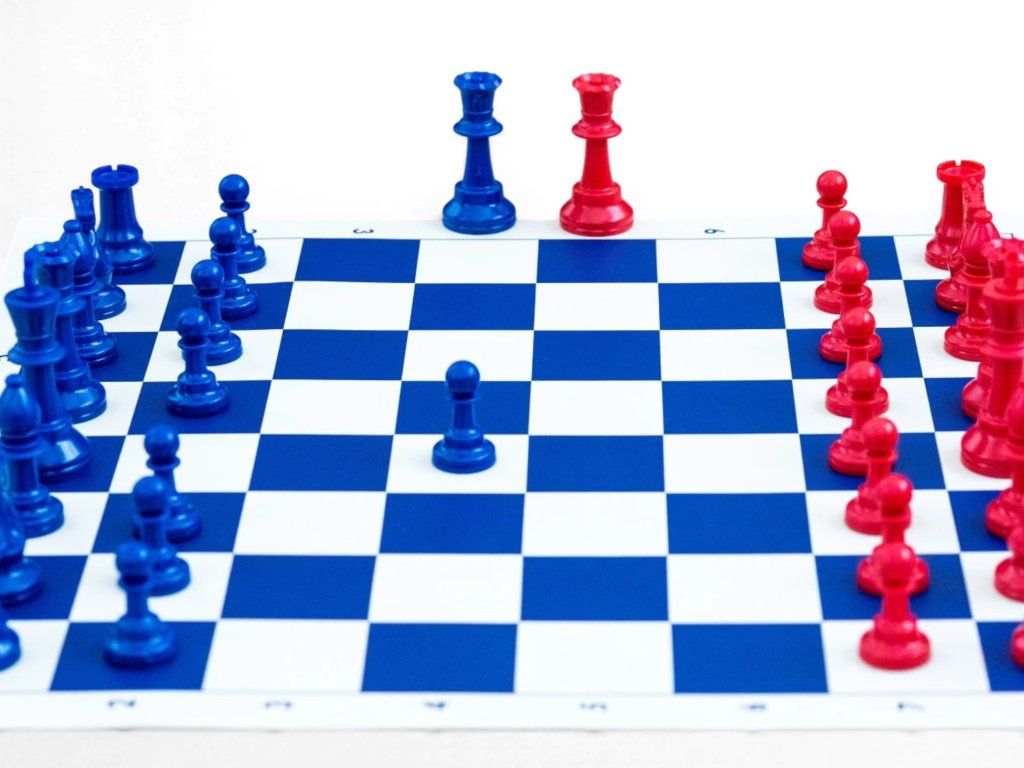 Schachset blau-rot, groß wurde speziell für die Bedürfnisse von Schulen, Schach-AGs und Trainingsgruppen entwickelt.Dank der markanten farblichen Unterscheidung der Figuren und des robusten rollbaren Schachbretts mit den Maßen 50 × 50 cm und Feldern in der Größe 5,5 × 5,5 cm ist es ideal für Anfänger und fortgeschrittene Spieler.Das Set enthält Kunststofffiguren im Staunton-Stil mit einer Königshöhe von 9,8 cm, zwei zusätzliche Damen und einen praktischen Stoffbeutel zur Aufbewahrung.