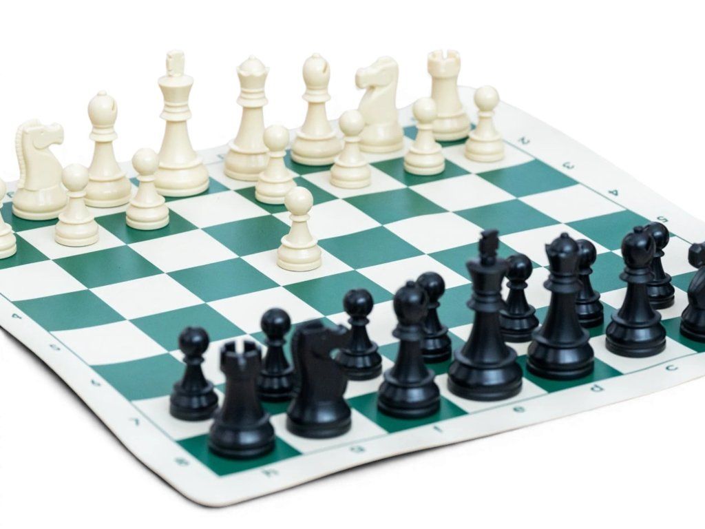 Schachset Victory - rollbares Schachbrett und hochwertige Kunststofffiguren in mittlerer Größe.
