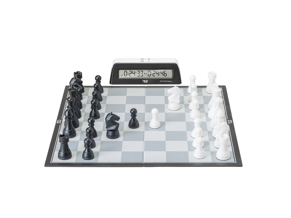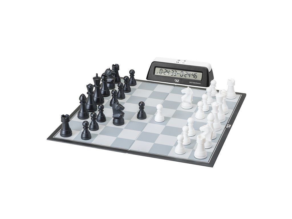 Fördern Sie Ihr kreatives Denken mit diesem durchdachten Schachspiel. Es lädt zwei Spieler ein, sich zusammenzutun, sich taktisch abzugrenzen und eine anregende Schachpartie zu genießen. Das Besondere an diesem Set ist der zusätzliche Bonus DGT1002 Schach-Timer, der das Spielerlebnis noch steigert. Die Schachfiguren haben das registrierte moderne Staunton Design von DGT und eine kleinere Größe, was sie ideal für Kinder macht.