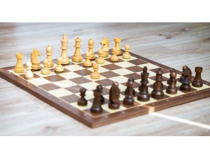 Das Holzschachbrett aus Nussbaum- und Ahornholz in einer Größe, die sowohl für Wettkampfschach...