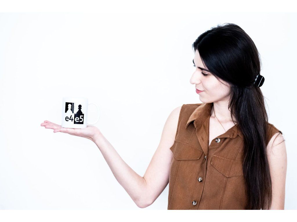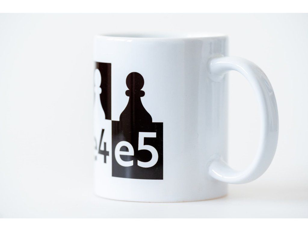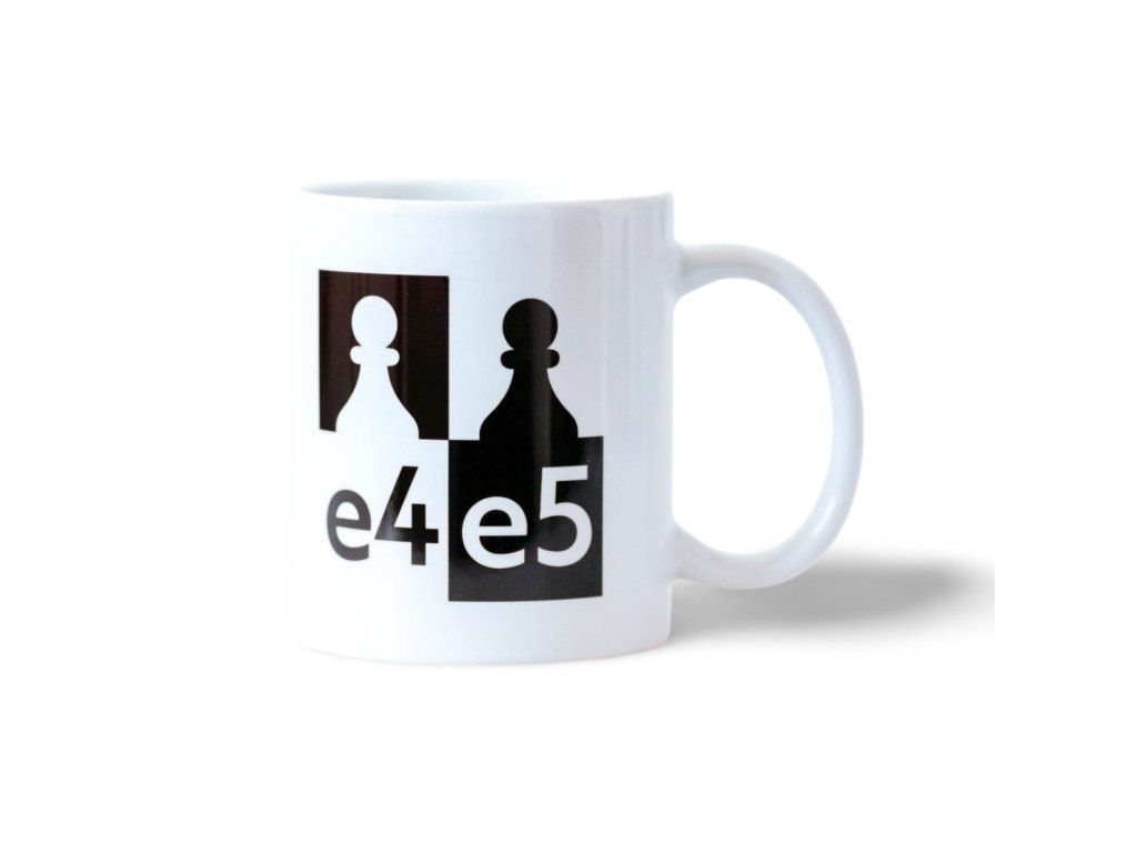 Keramikbecher mit e4e5-Grafik bedruckt, aus dem Sie Tee oder Kaffee bei einer Schachpartie genießen können, oder einfach so, in freien Momenten...