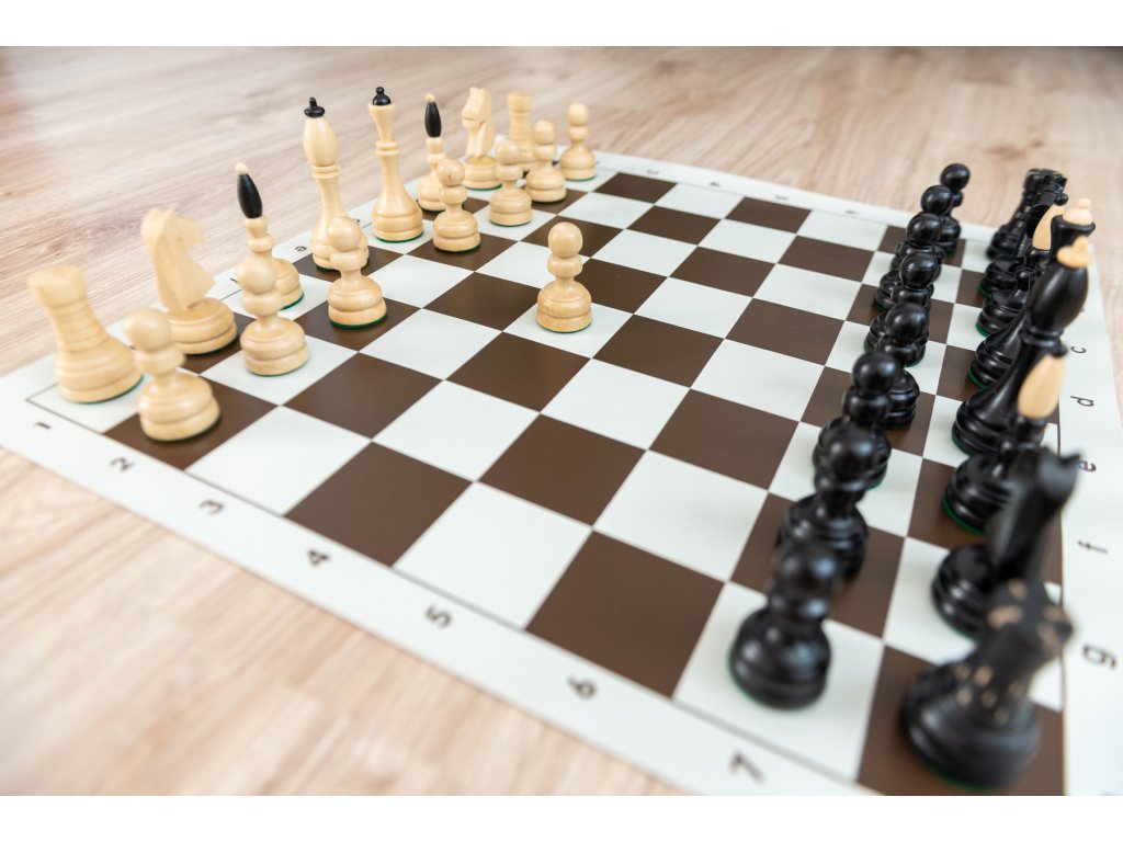 Rollbares Schachbrett braun, Brettgröße 50x50 cm, Feldgröße 5,5x5,5 cm.